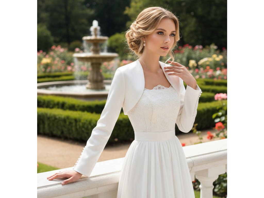 › Svatební bolerka › Svatební saténové bolerko s knoflíky na rukávu - ivory: BD-61