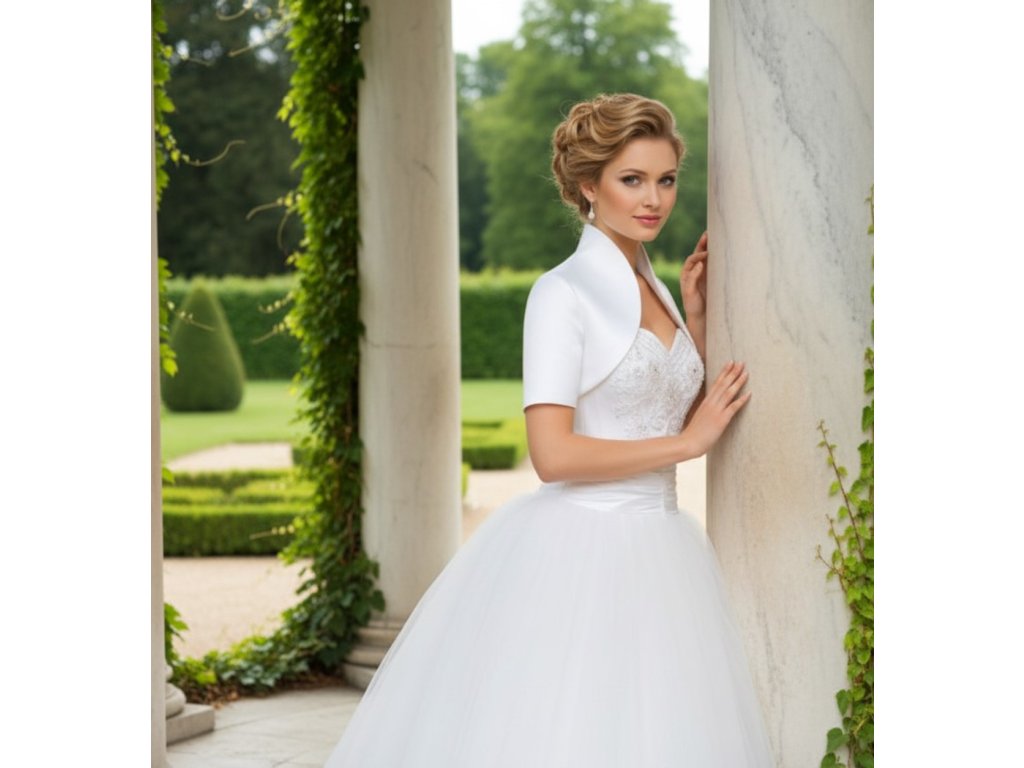 › Svatební bolerka › Svatební saténové bolerko s vysokým límcem - bílé: BF-23