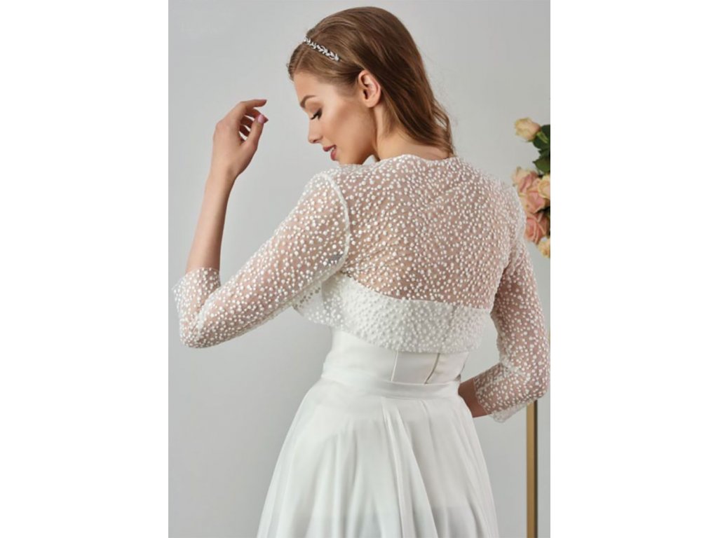 Tylové puntíkové svatební bolerko s 3/4 rukávem.