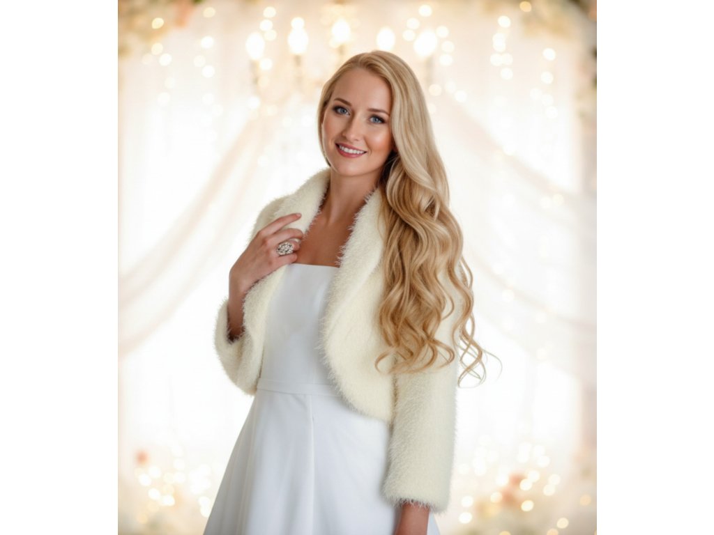 Velurové svatební bolerko - ivory: B-611, vel. L/XL