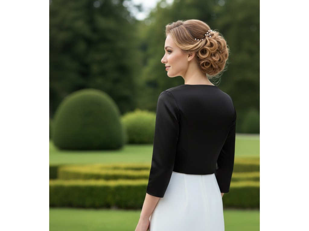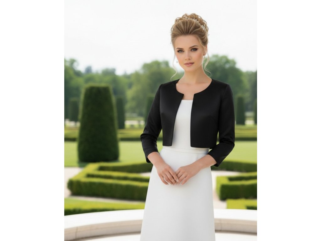 › Svatební bolerka › Vypasovaný saténový kabátek - černý: BF-231