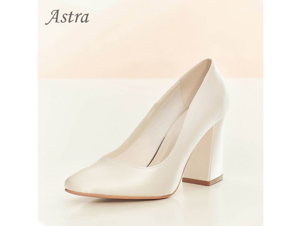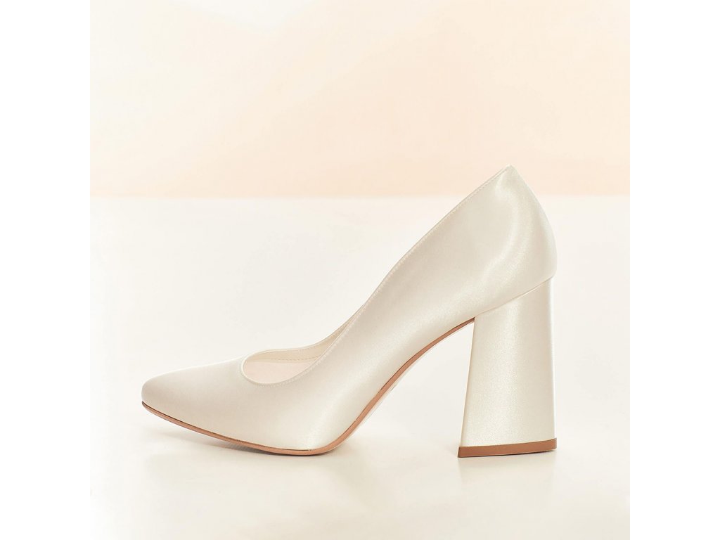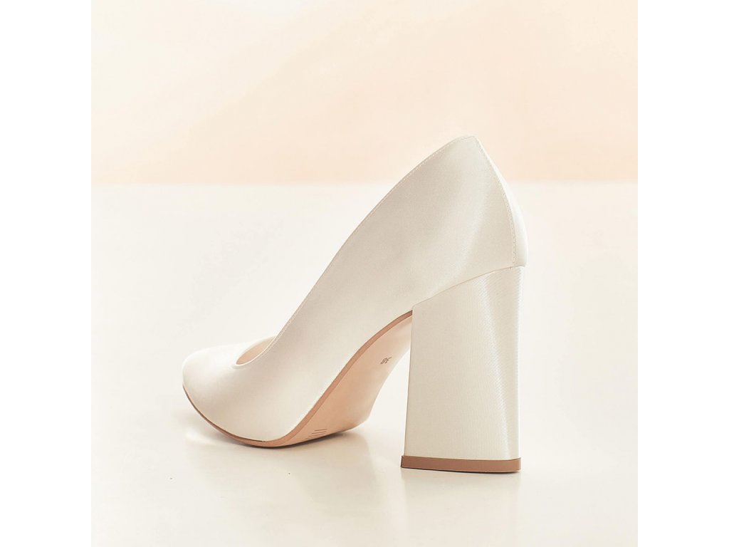 Pohodlné saténové svatební lodičky se širokým podpatkem.