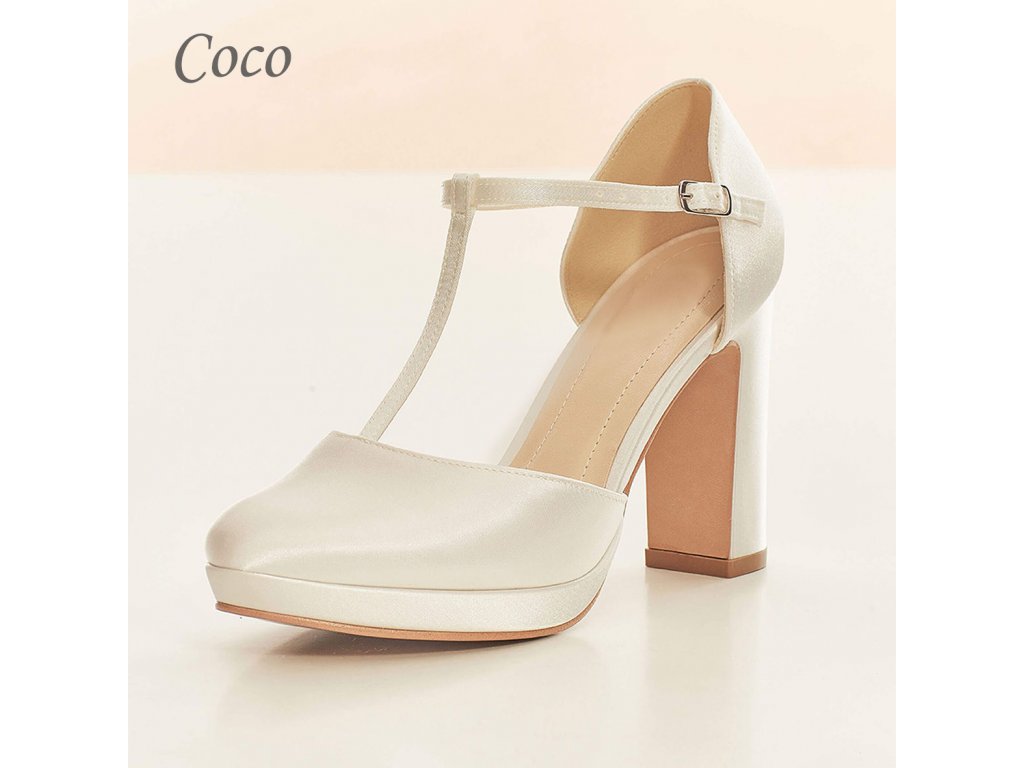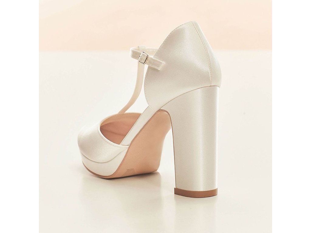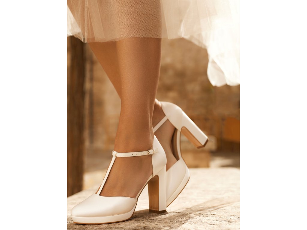 Vysoké saténové svatební boty na platformě.