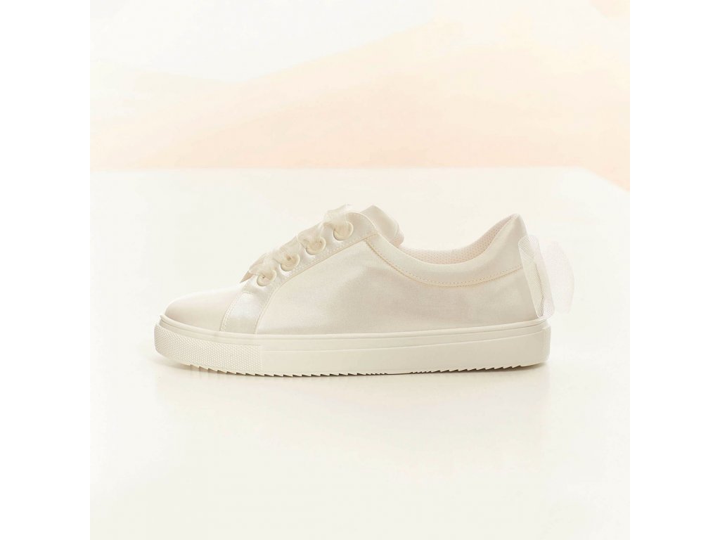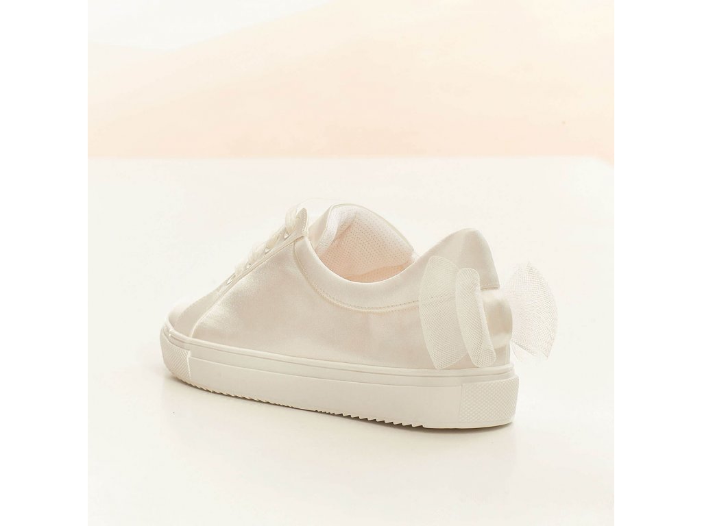 Saténové svatební tenisky dámské, zdobené tylovou mašlí na patě.