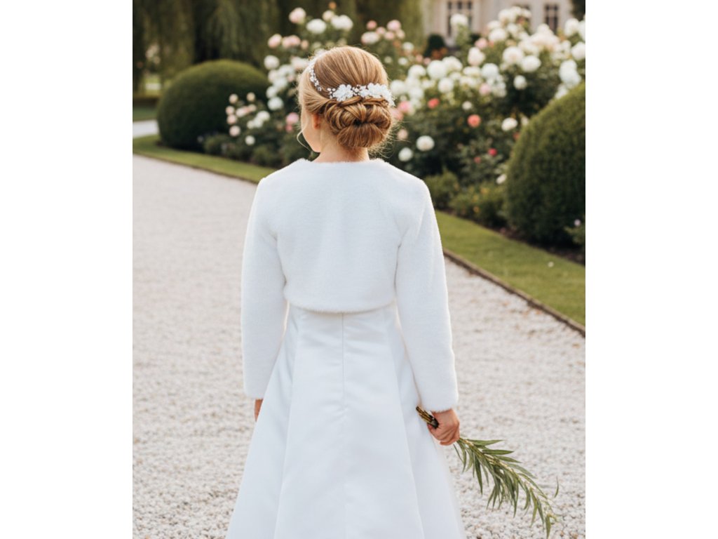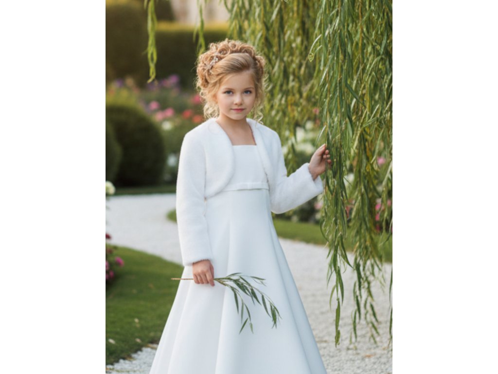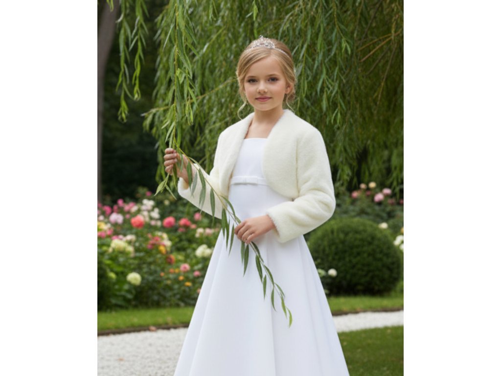 Dětské plyšové svatební bolerko s dlouhým rukávem.