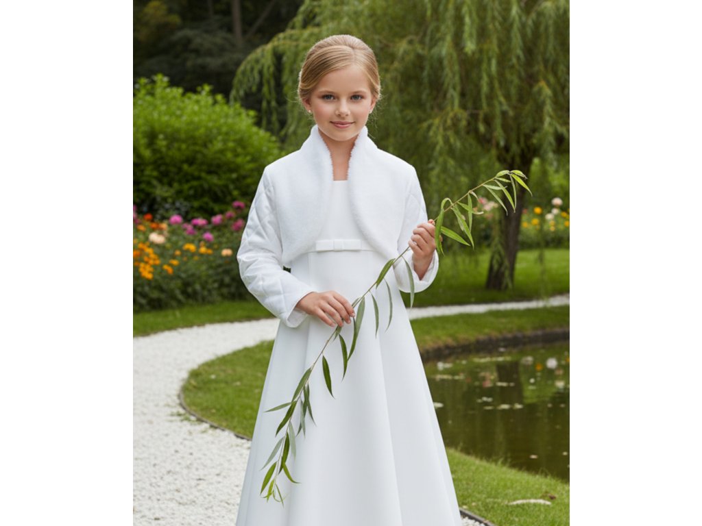 Dětské plyšové svatební bolerko s prošívanými rukávy.