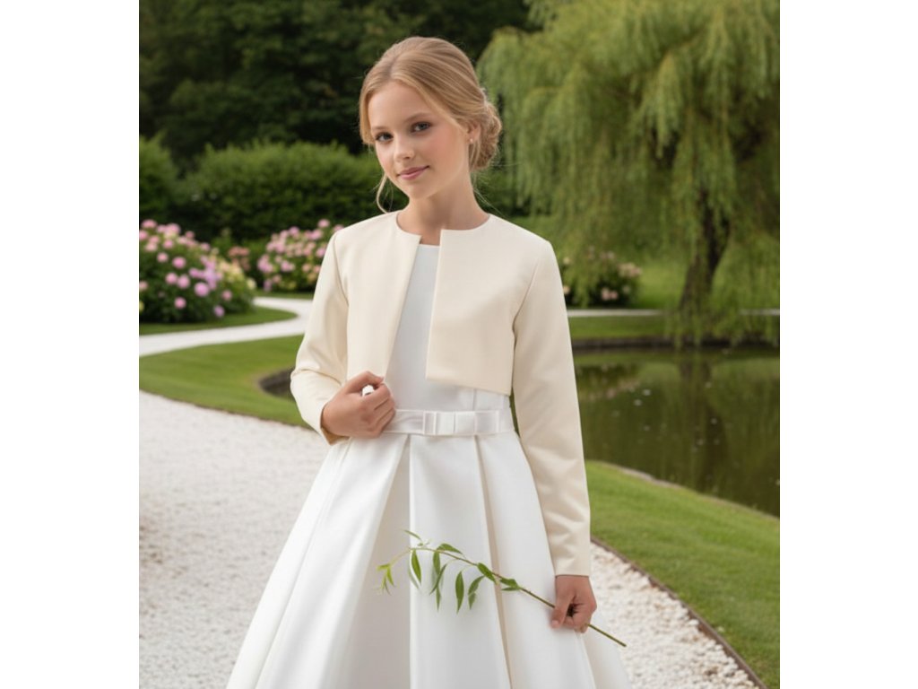 Dětské saténové svatební bolerko s dlouhým rukávem.