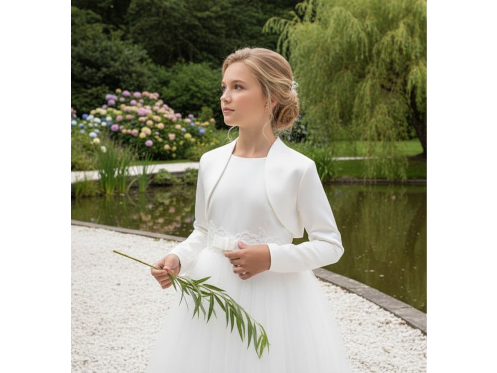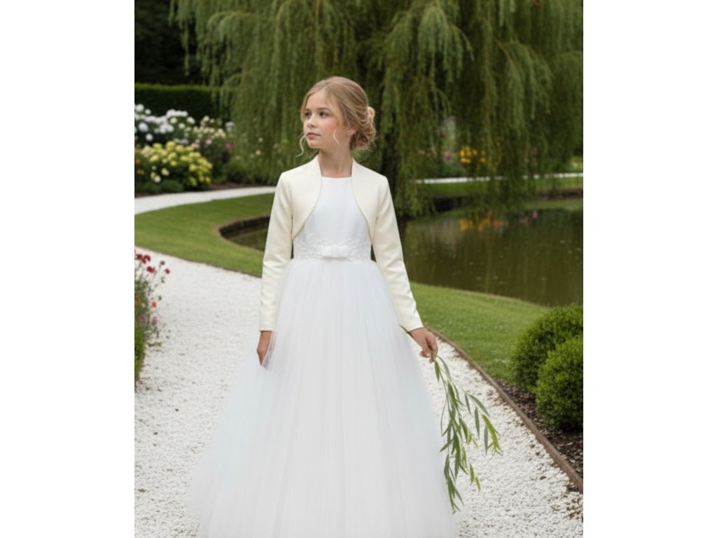 Dětské saténové svatební bolerko s dlouhým rukávem.