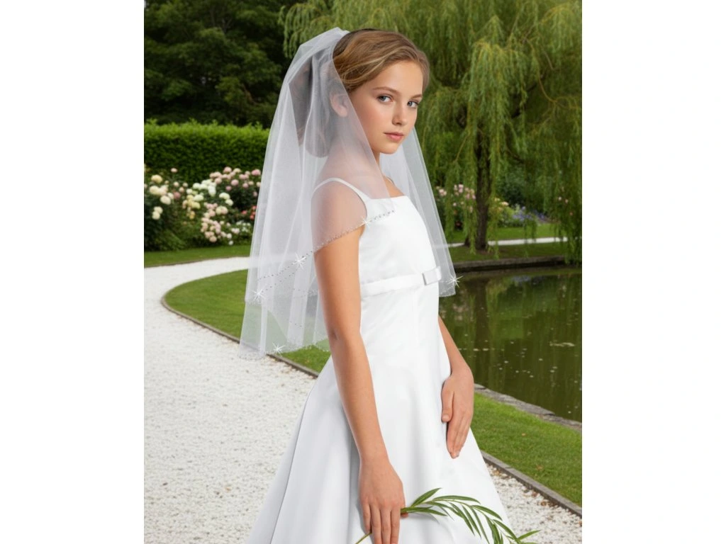 Dětský dvojvrstvý svatební závoj ručně lemovaný korálky DB-04