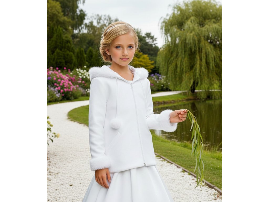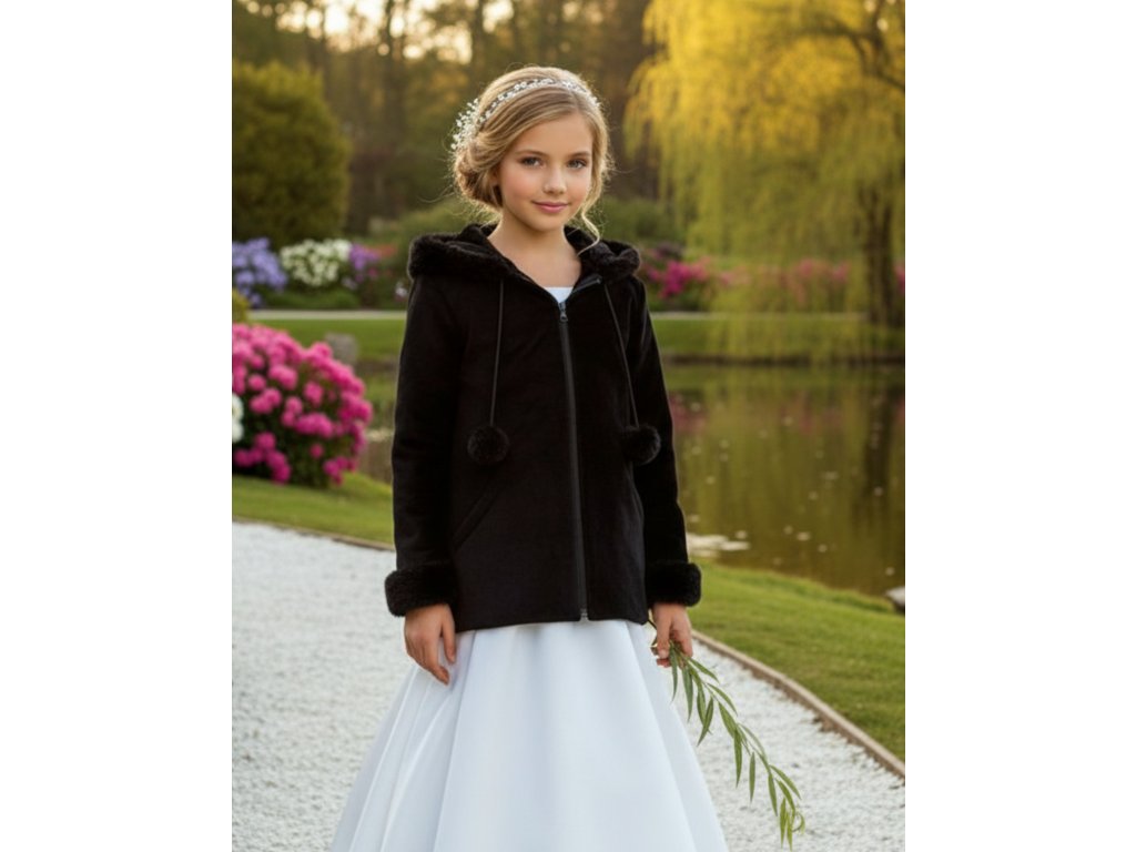Dětský fleesový kabát s kožešinovým lemem.