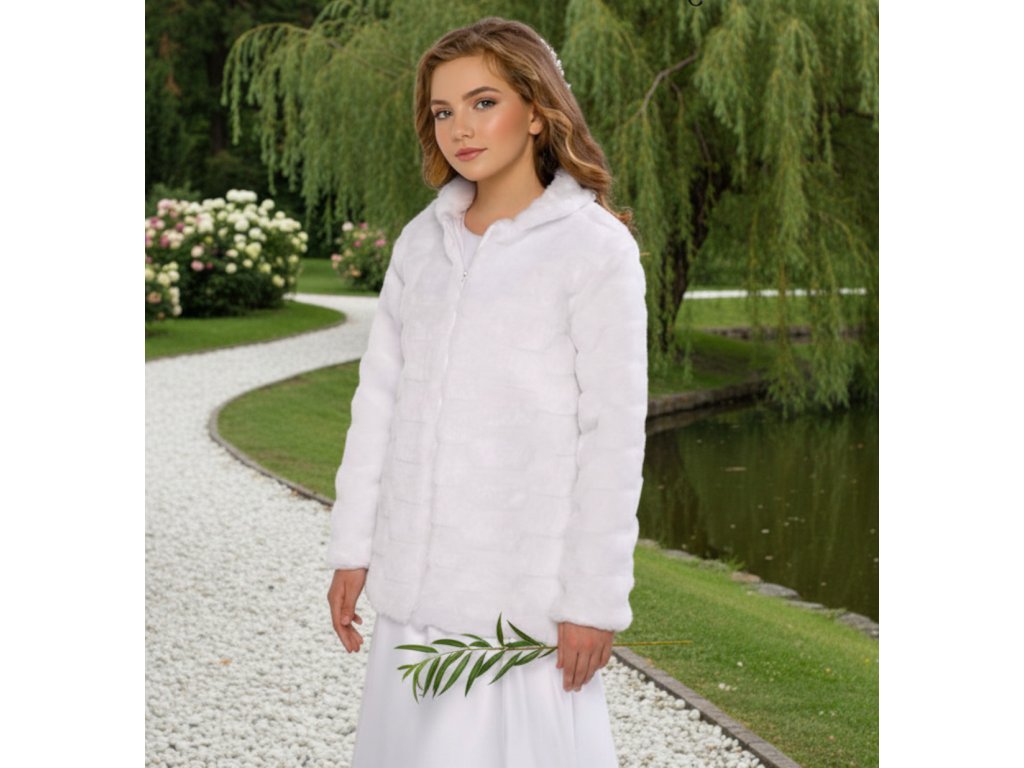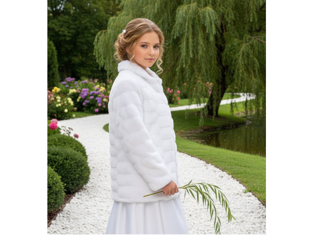 Dětský svatební kabátek z jemného prošívaného kožíšku.