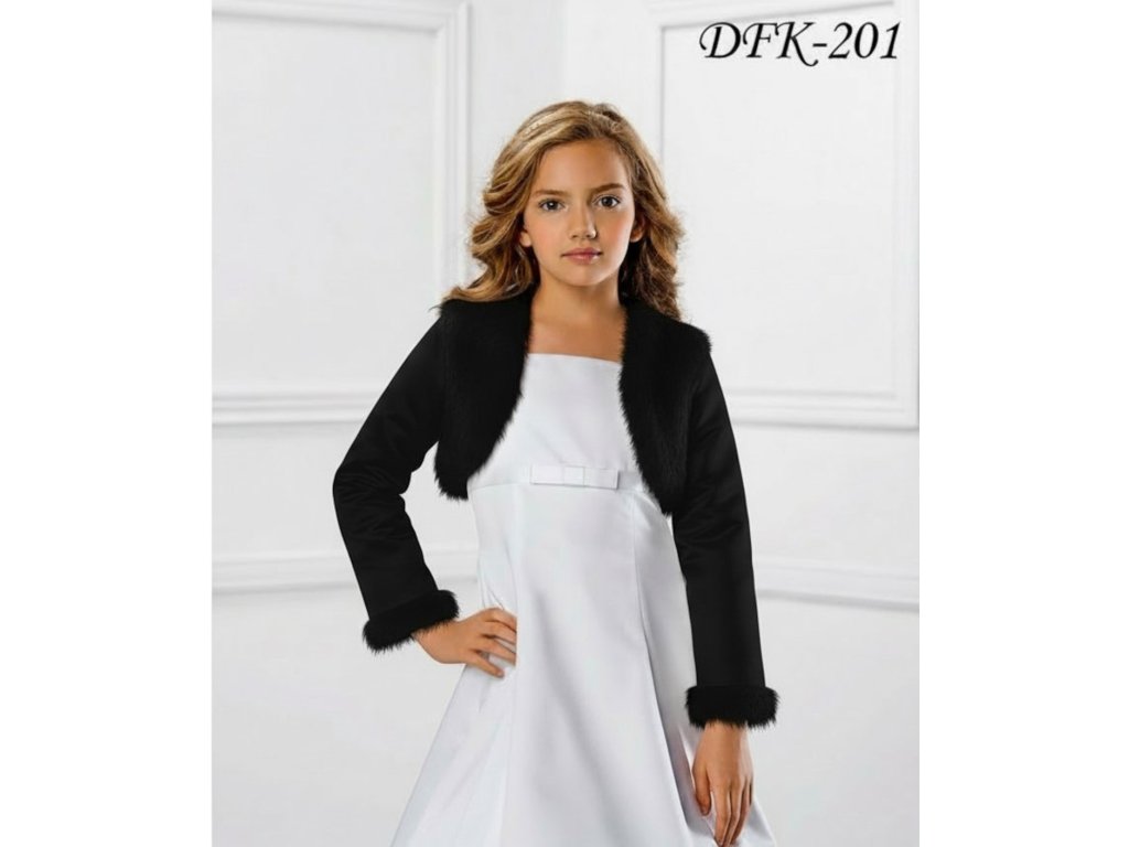 Dětský svatební kožíšek se saténovými rukávy DFK-201