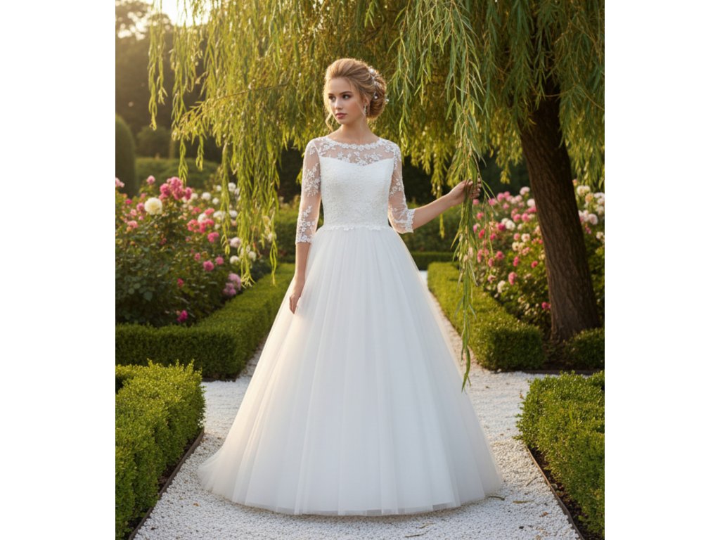 Šaty jsou ušity z velmi kvalitních svatebních látek a krajek.
