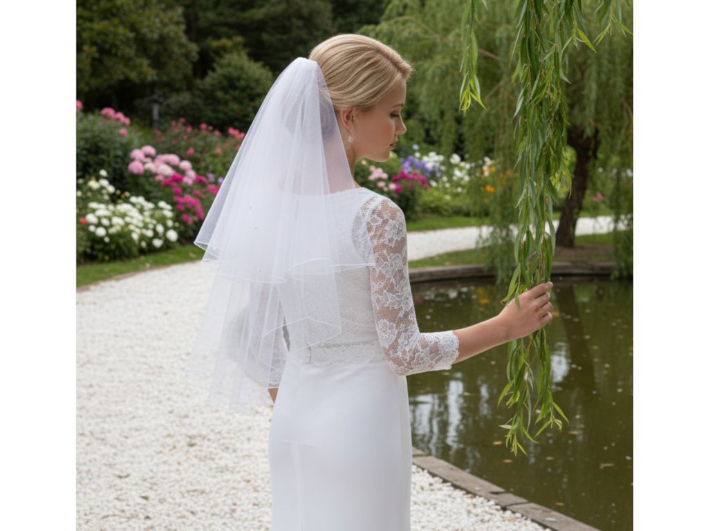 Dvojvrstvý dětský svatební závoj zdobený krystaly.