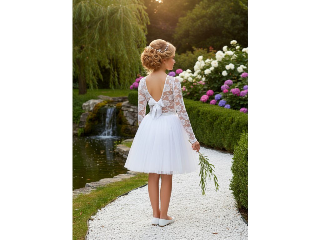 Krátké šatičky pro družičku, s krajkovým topem a tylovou sukní.