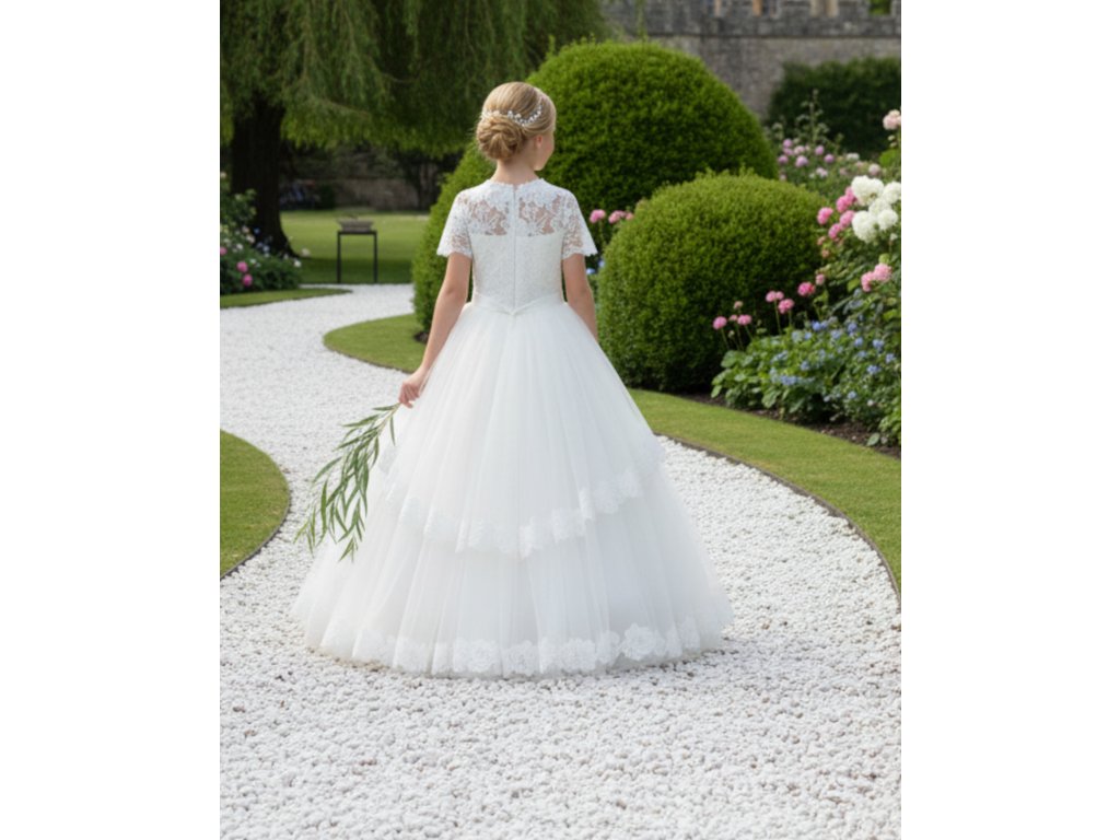 Luxusní dětské šaty pro družičky, s širokou tylovou sukní lemovanou krajkou.