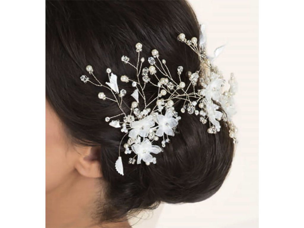 Květinové svatební ozdoby do vlasů s krystaly a perličkami.