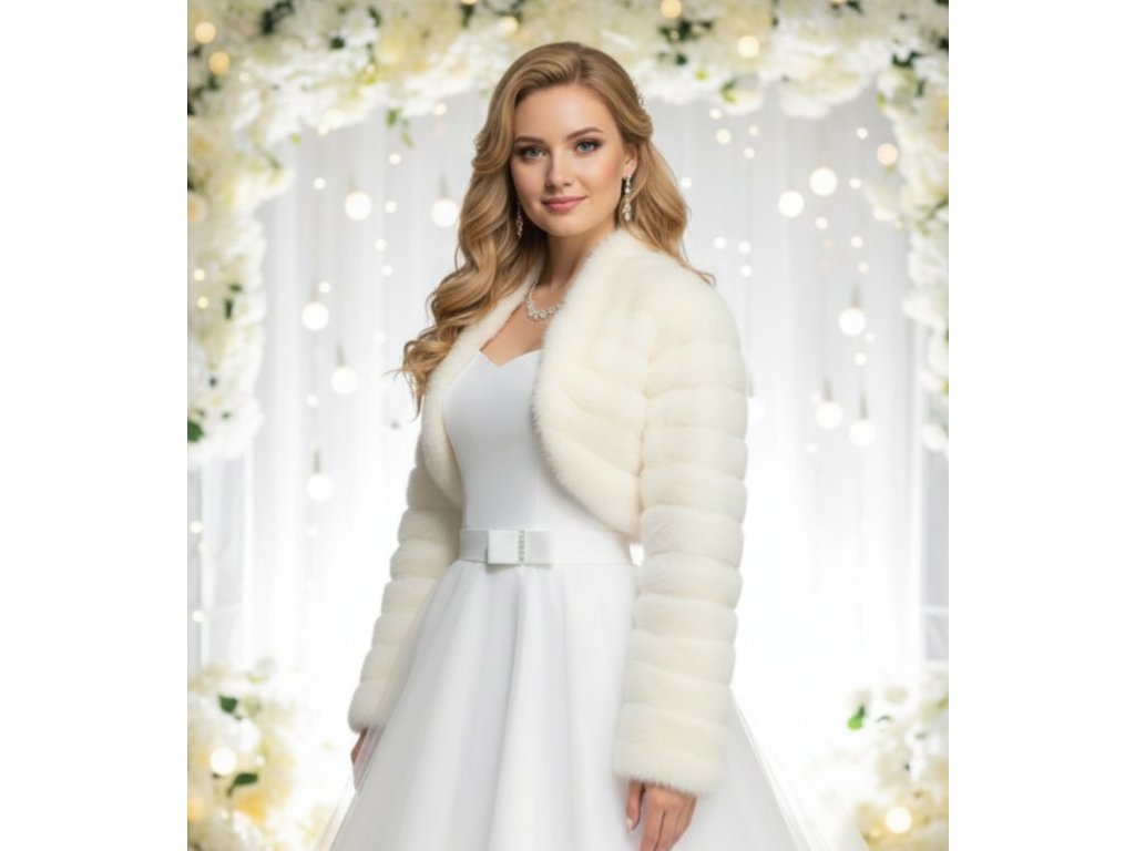 Kožešinové svatební bolerko s dlouhými rukávy.