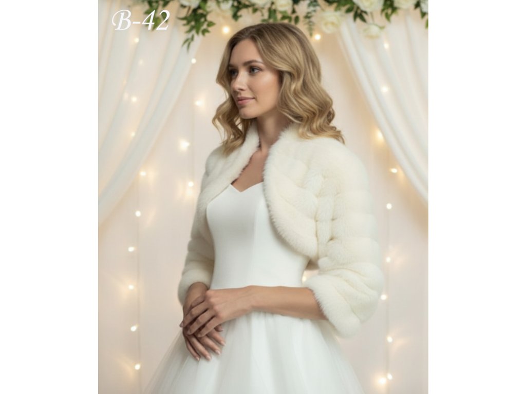Kožešinové svatební bolerko s 3/4 rukávem.