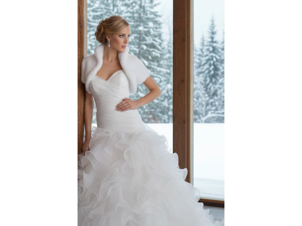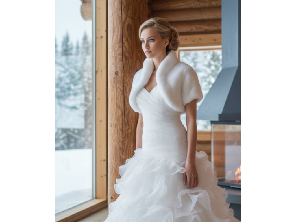 Kožešinové svatební bolerko s krátkým rukávem - bílé: BF-44
