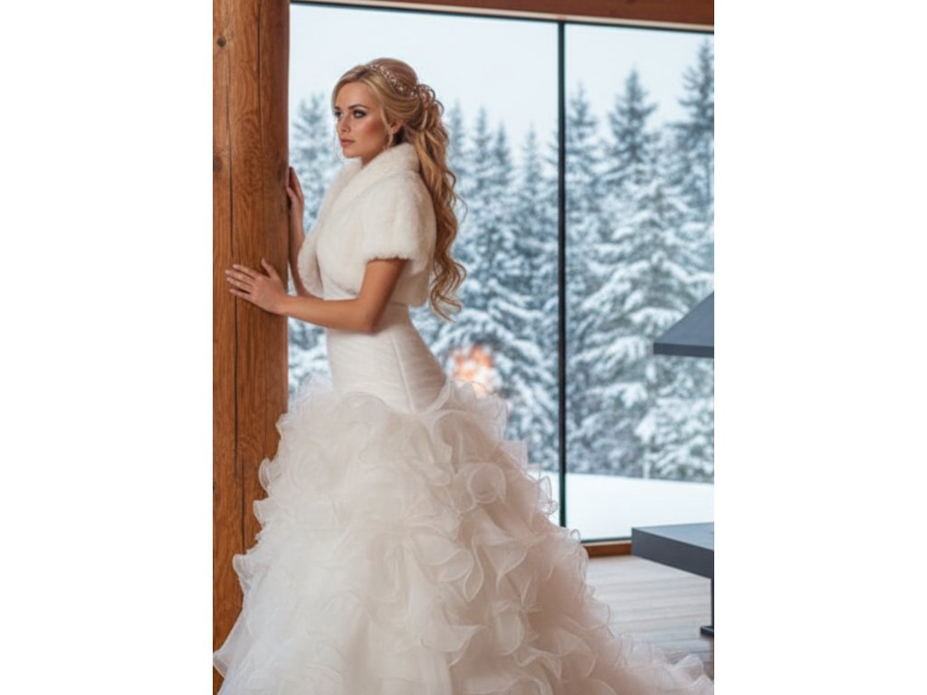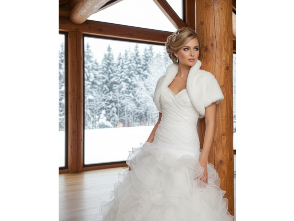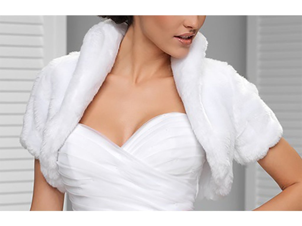 Kožešinové svatební bolerko s krátkým rukávem.
