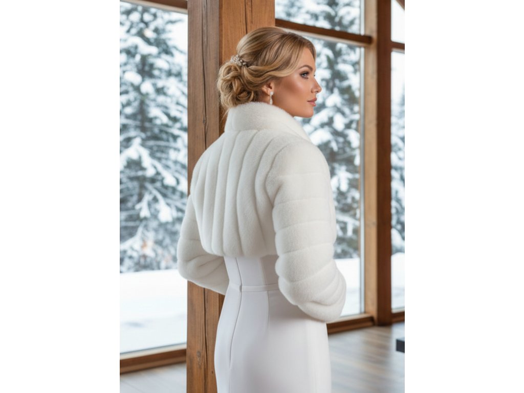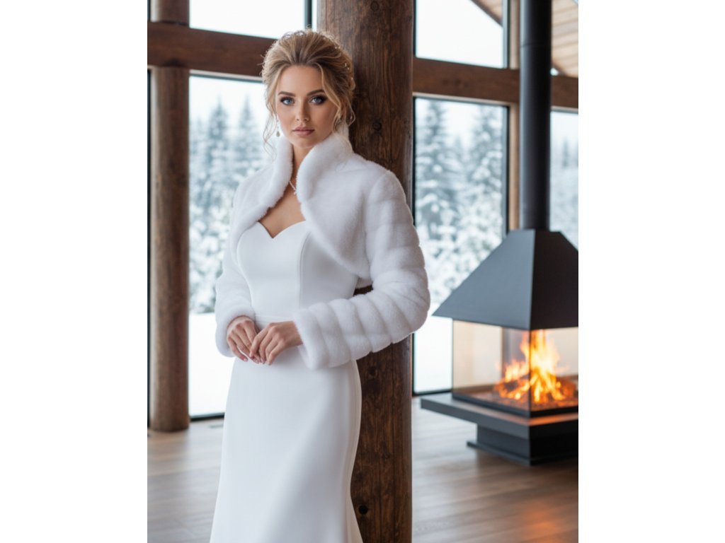 Kožešinové svatební bolerko s vysokým límcem.