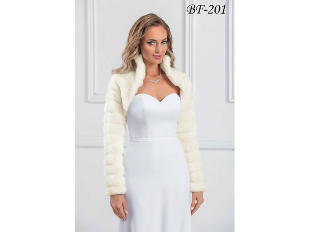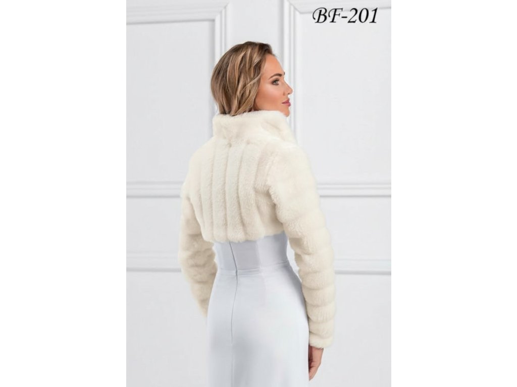 › Svatební kožíšky a svetry › Kožešinové svatební bolerko s vysokým límcem - ivory: BF-201