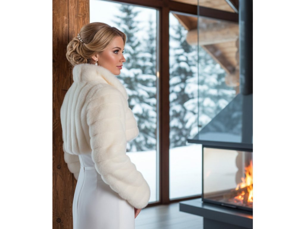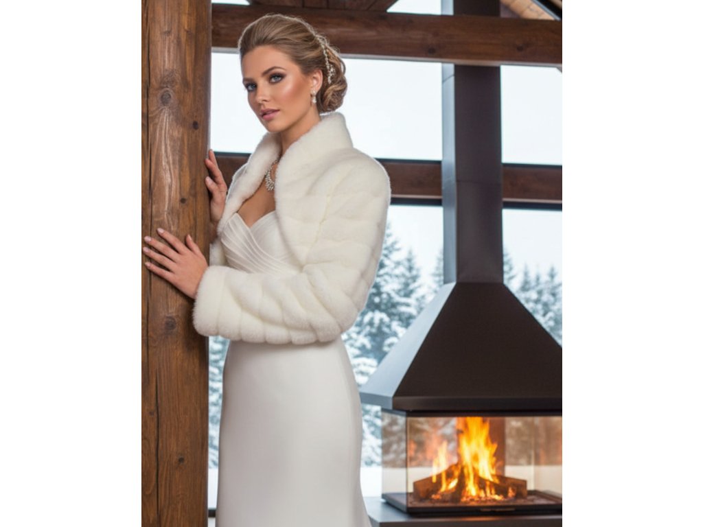 Kožešinové svatební bolerko s vysokým límcem.