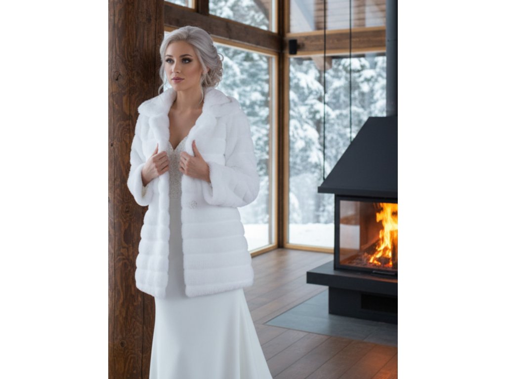 Svatební kabát z kvalitní umělé kožešiny.