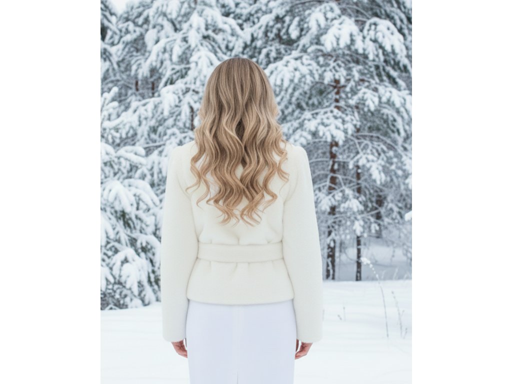 Kožešinový svatební kabátek s páskem - ecru: BS-55