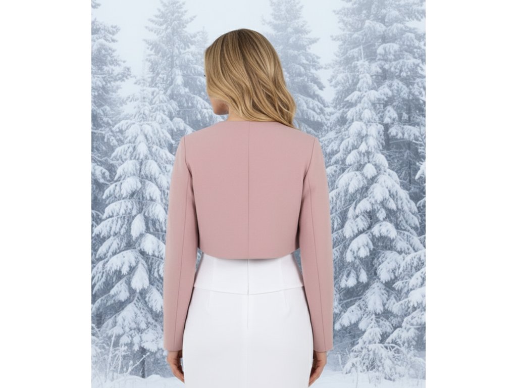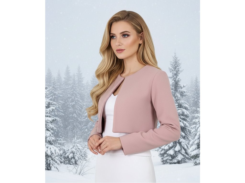 › Svatební kožíšky a svetry › Krátký flaušový svatební kabátek - pudrově růžový: BS-68