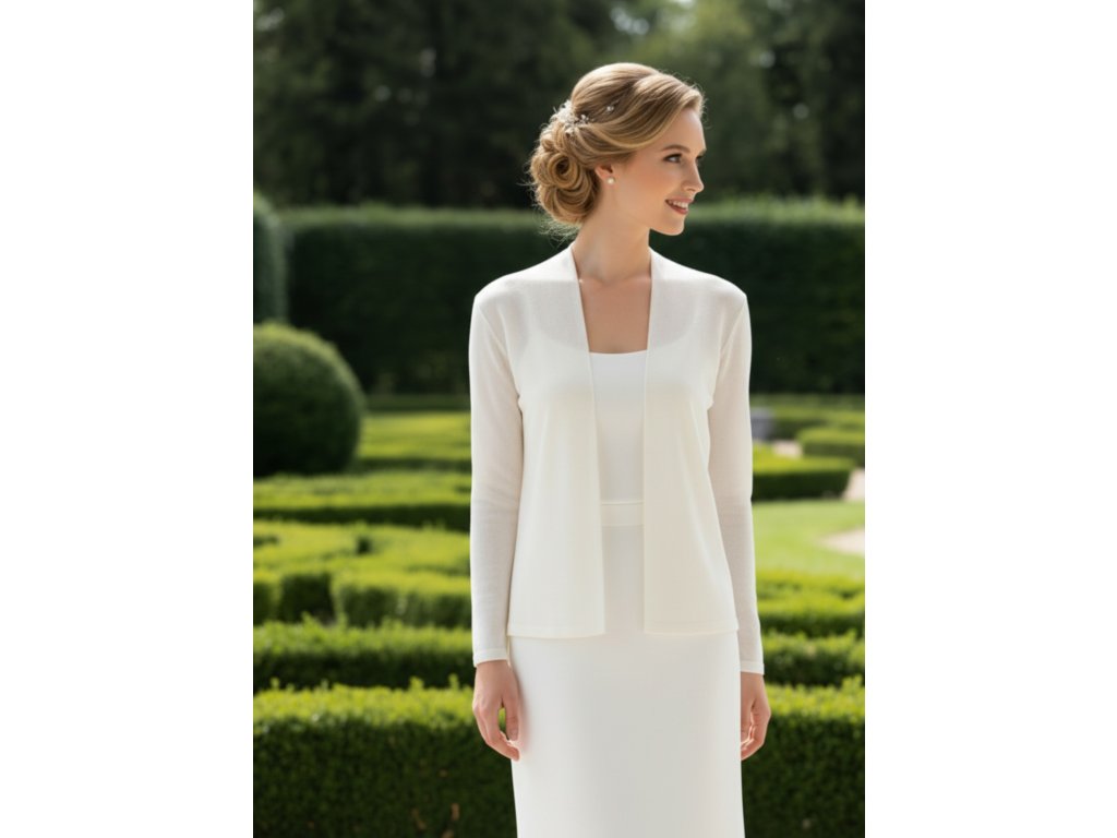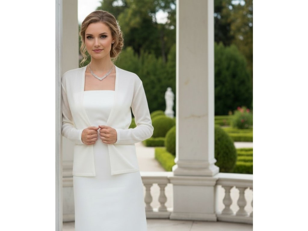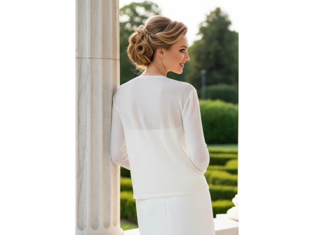 Pletený svatební svetr bez zapínání.