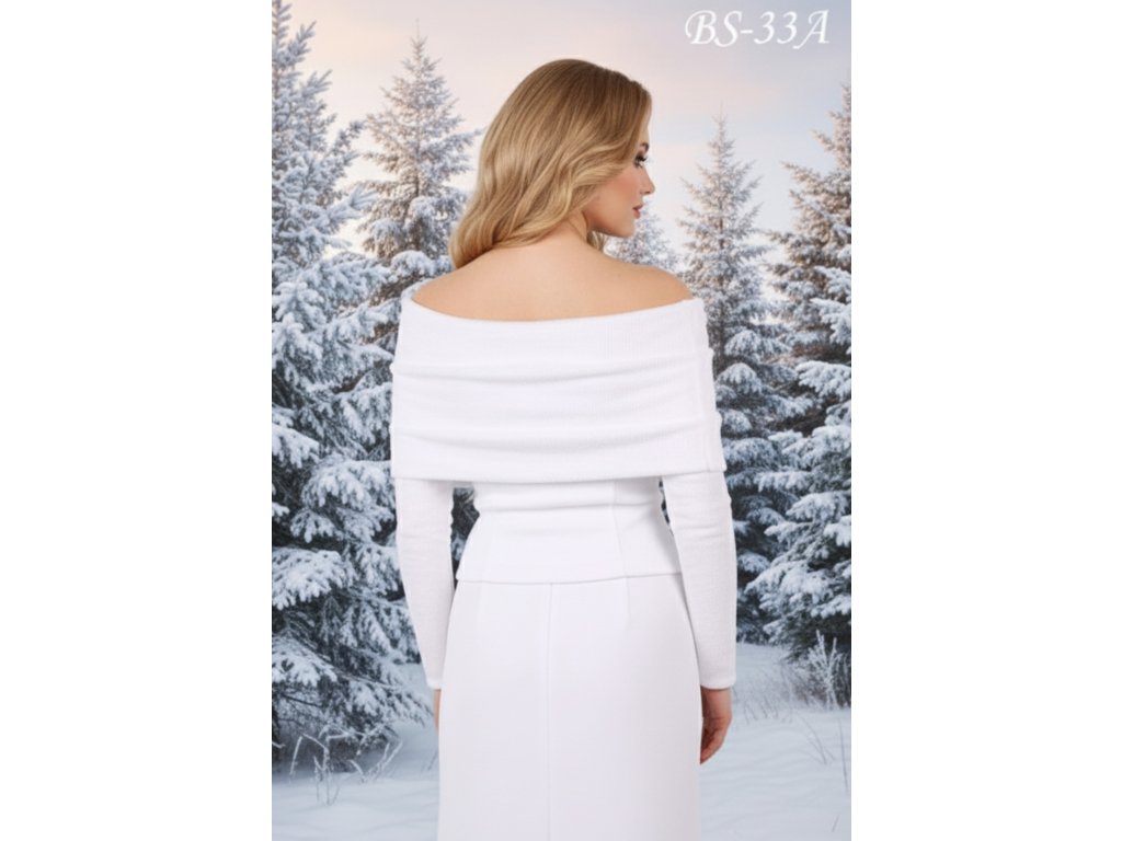 › Svatební kožíšky a svetry › Plyšová svatební pelerína s dlouhými rukávy - bílá: BS-33A