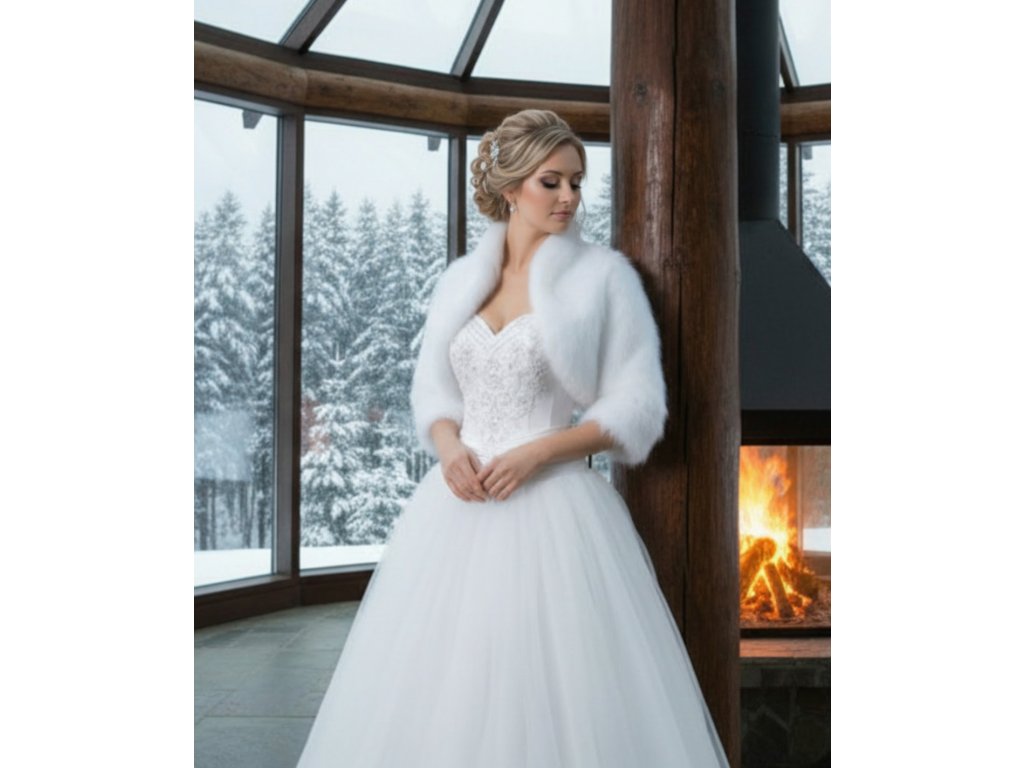 › Svatební kožíšky a svetry › Plyšové svatební bolerko s 3/4 rukávem- bílé: BF-57