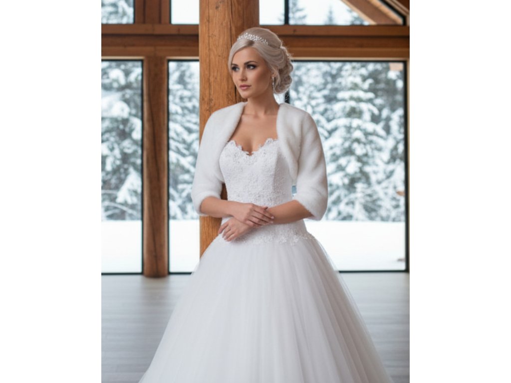 Plyšové svatební bolerko s 3/4 rukávem.