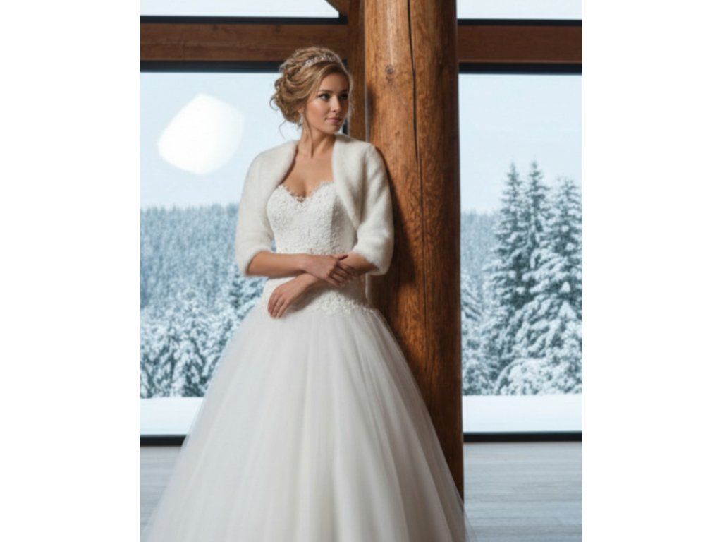 Plyšové svatební bolerko s 3/4 rukávem.