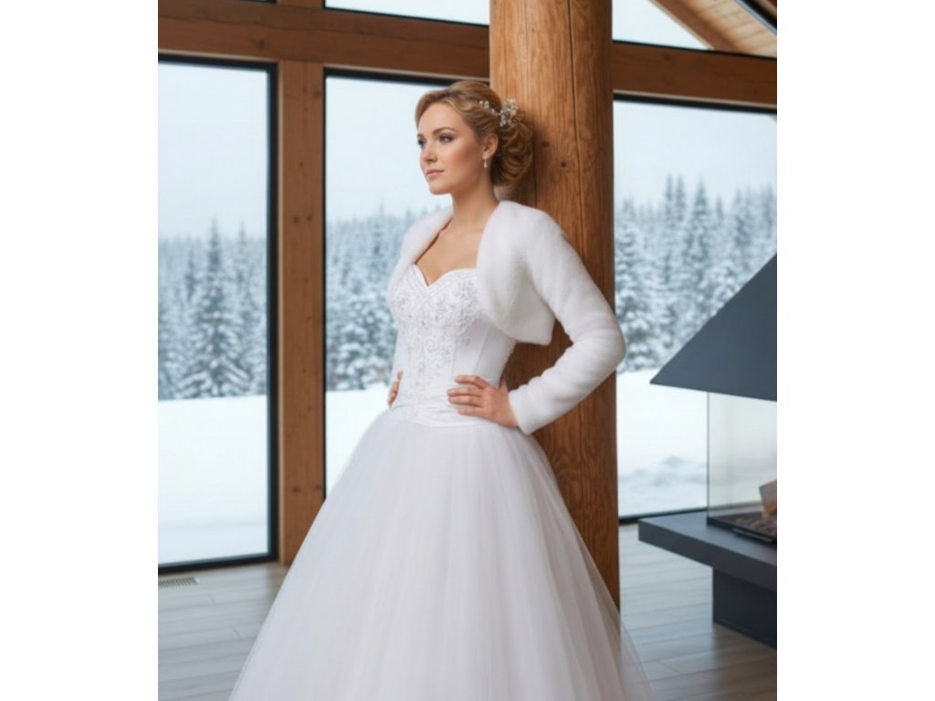 Plyšové svatební bolerko s dlouhým rukávem.