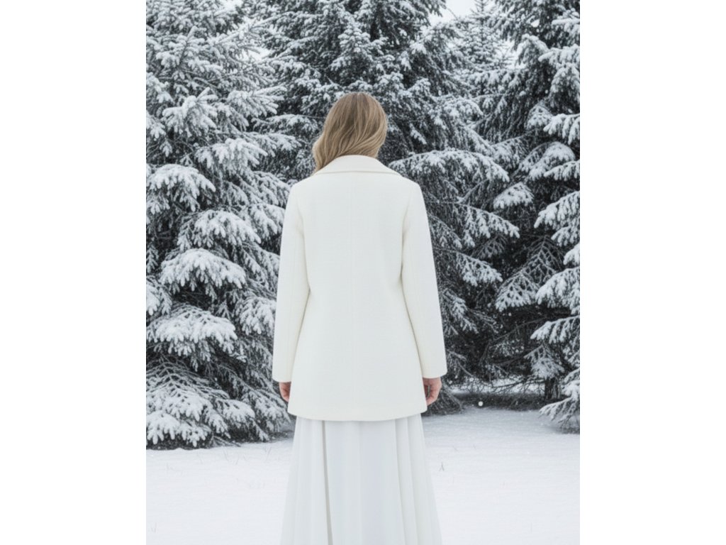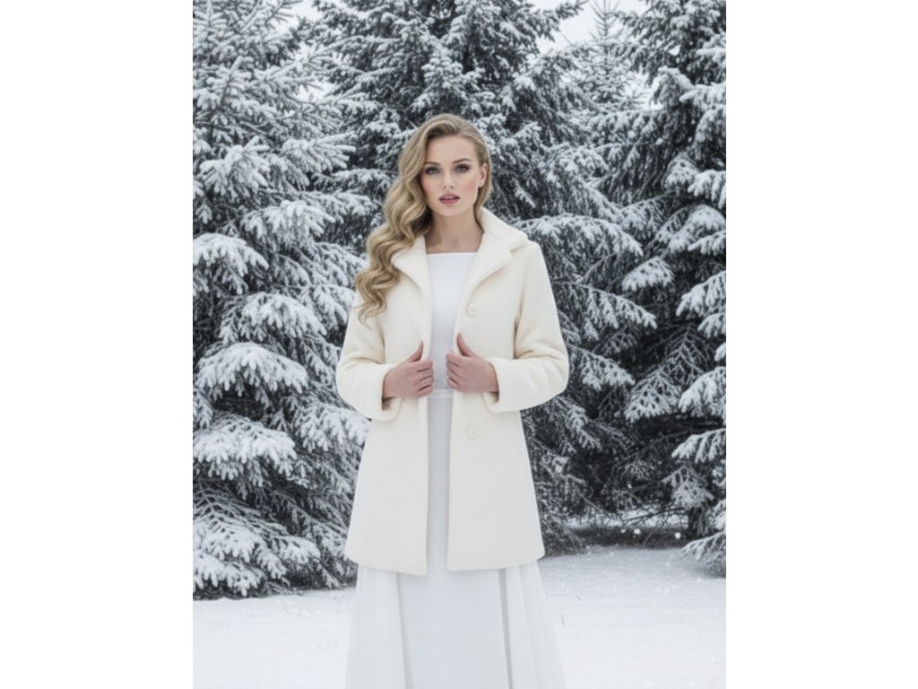 Polodlouhý plyšový svatební kabát.