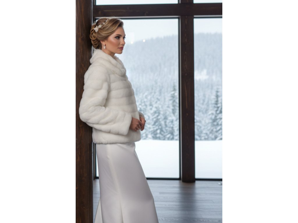 › Svatební kožíšky a svetry › Prošívaný svatební kožešinový kabát - bílý: BF-238