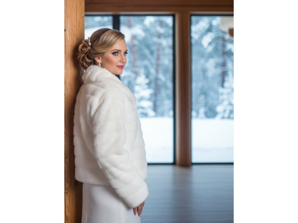 Prošívaný svatební kabát z kvalitní umělé kožešiny.