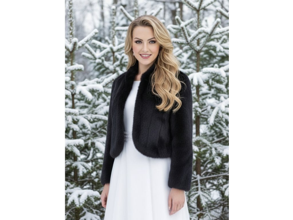 › Svatební kožíšky a svetry › Prošívaný zimní kožíšek - černý: BS-05