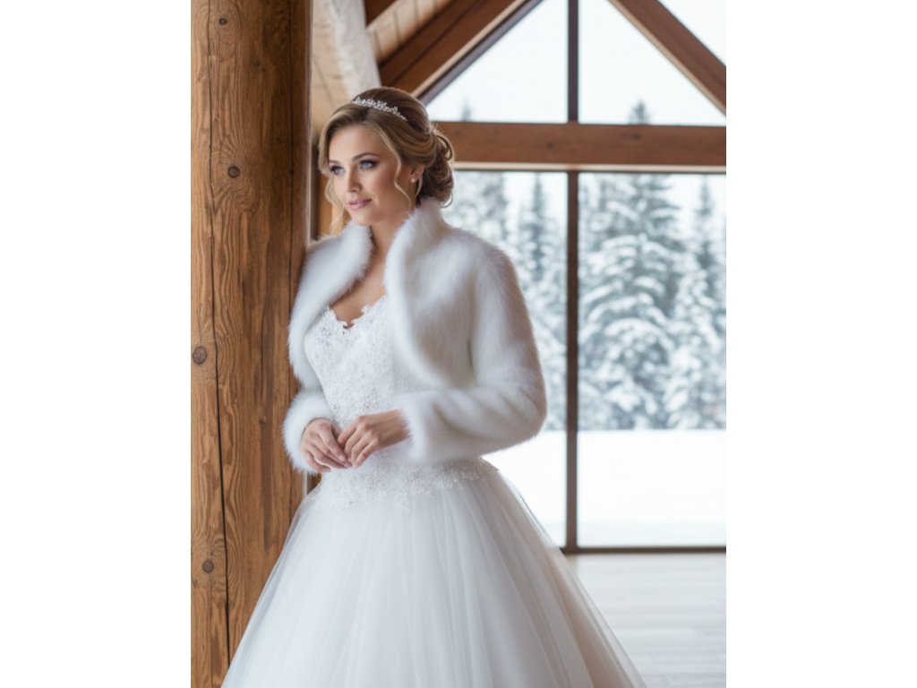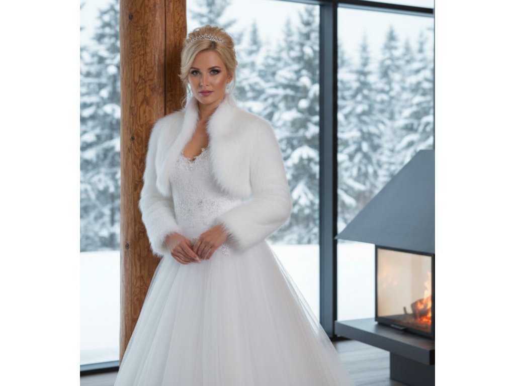 Svatební bolerko na zimu, vyrobené z kvalitní umělé kožešiny.