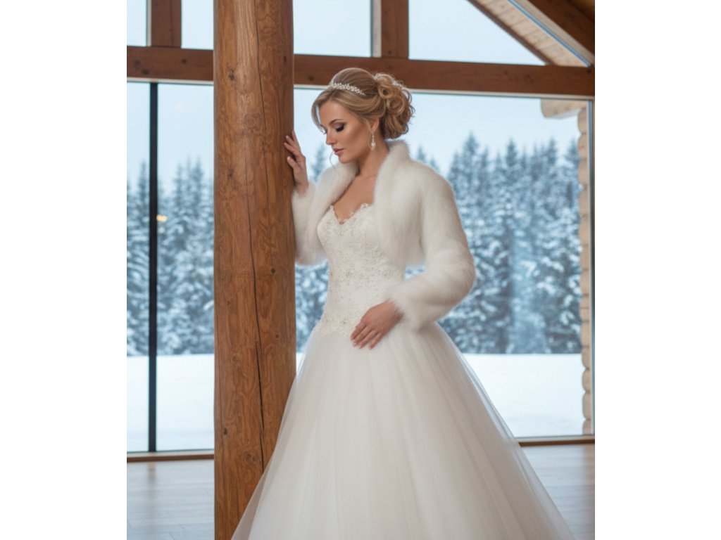 Svatební bolerko na zimu, vyrobené z kvalitní umělé kožešiny.