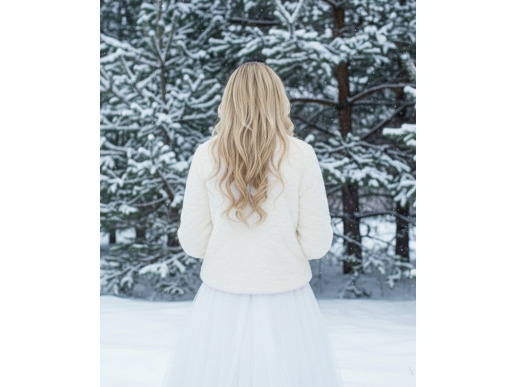 Svatební kabátek z prošívané kožešiny.