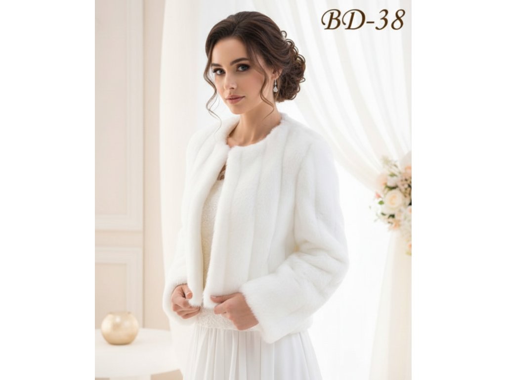 Svatební kožešinové bolerko bez límce.