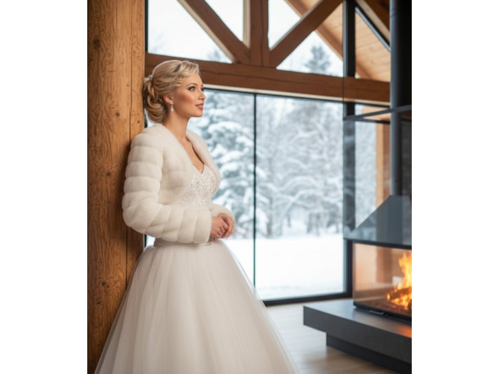 Svatební bolerko z umělé kožešiny.