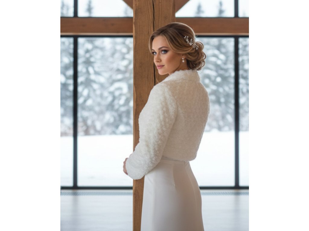 Svatební kožíšek s límcem a dlouhým rukávem.