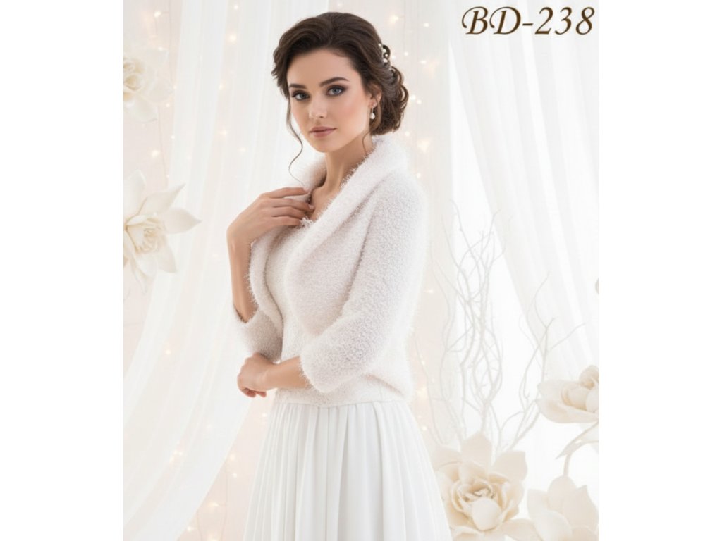 › Svatební kožíšky a svetry › Svatební velurové bolerko s límcem - bílé: BD-238
