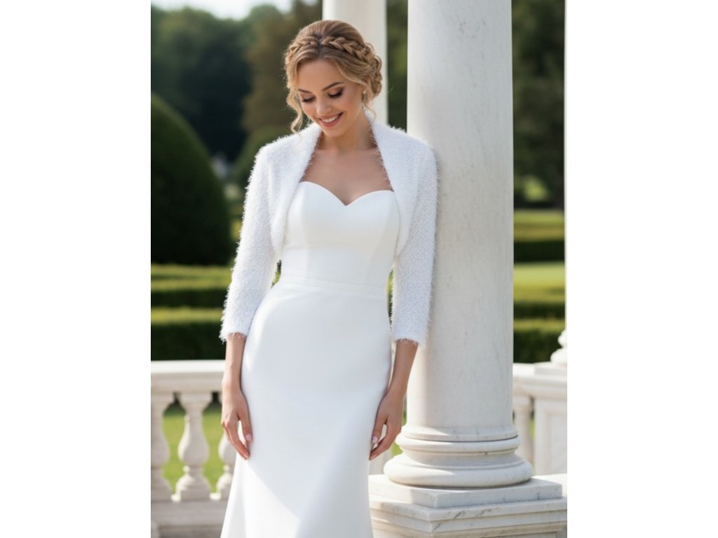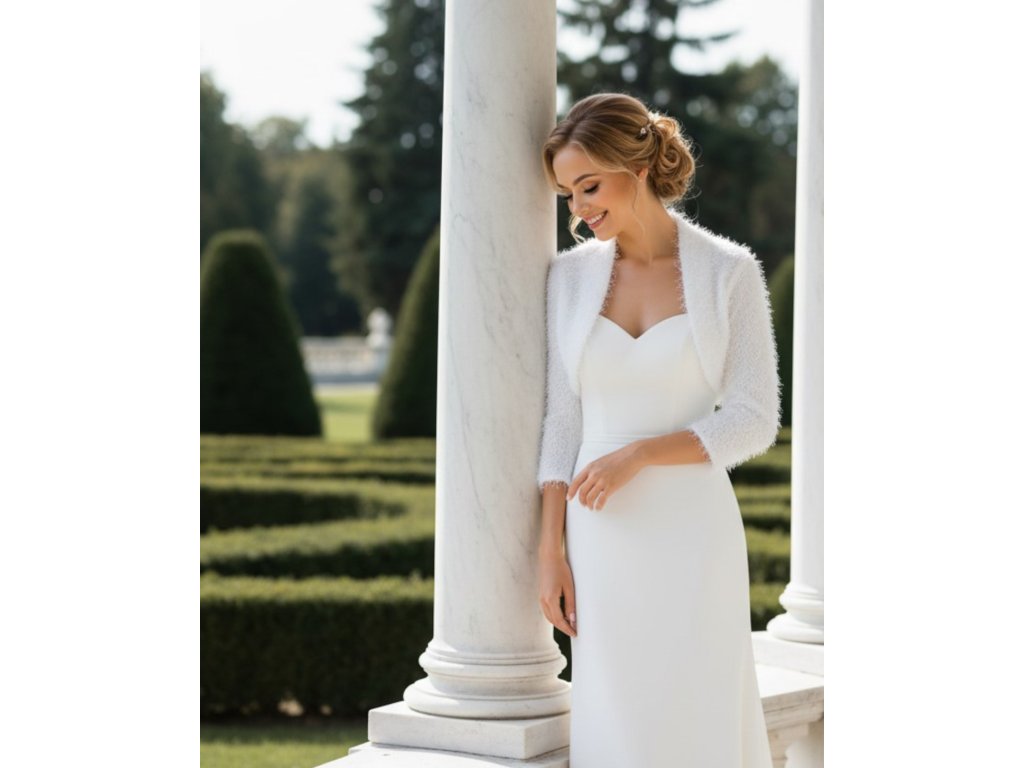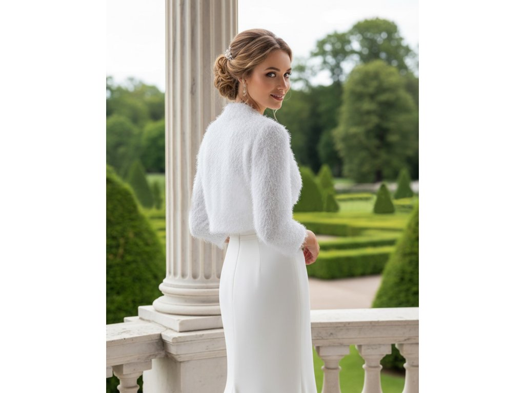 › Svatební kožíšky a svetry › Velurové svatební bolerko - bílé: BF-205, vel. L/XL