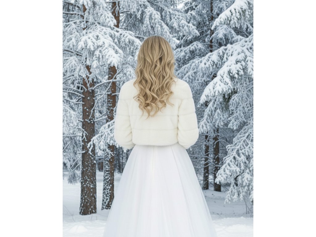 Zimní kožešinový prošívaný svatební kabátek.
